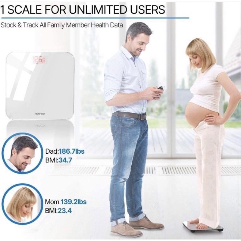 RENPHO Bluetooth BMI Bathroom Scales, Digital Body Weight Scale with High Precision Sensors and Smartphone App ES-26R-W