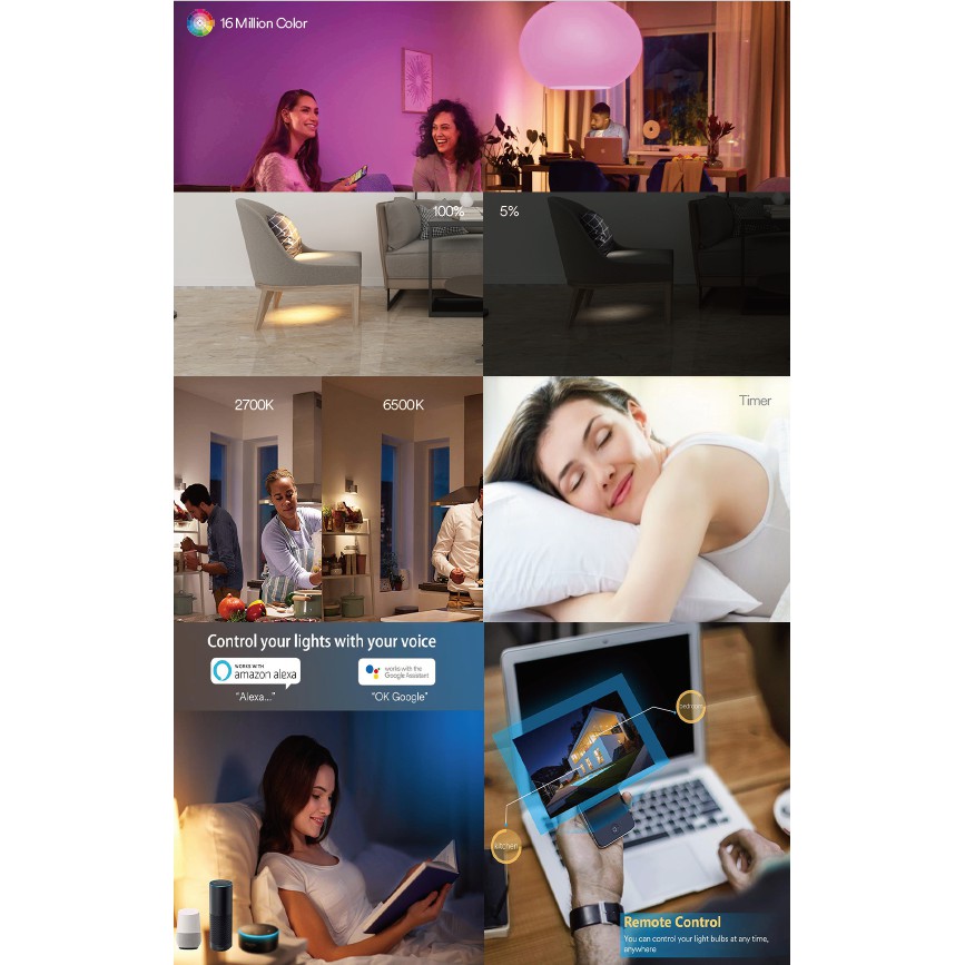 RETOUCH BLE 9W E27 A60 Smart LIGHT Bulb RGB+CCT (Dimmable) Scene Music Sync Voice Alexa Google Home Tmall Genie