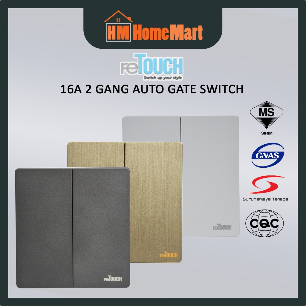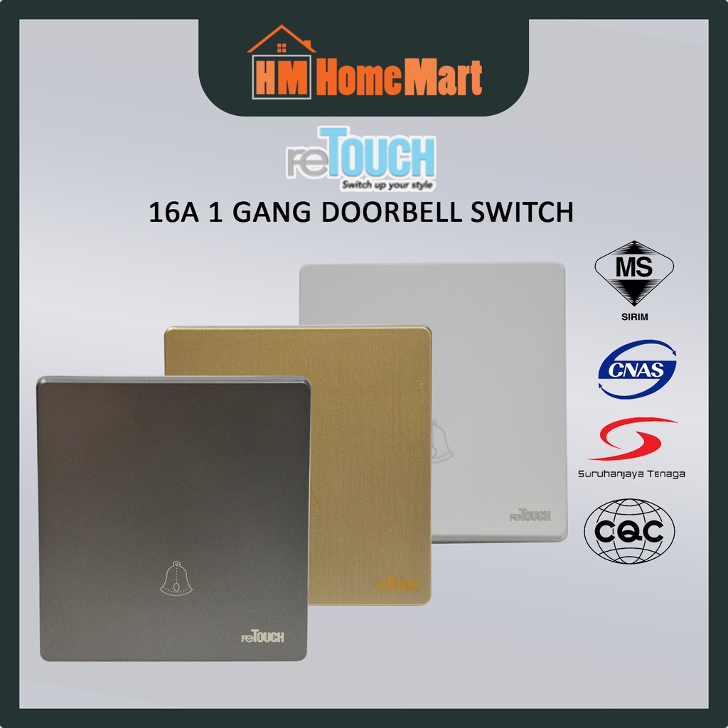 RETOUCH Ultra Rimless 16A 1 Gang Doorbell/2 Gang Auto Gate Switch (SIRIM) (2 Years Warranty)
