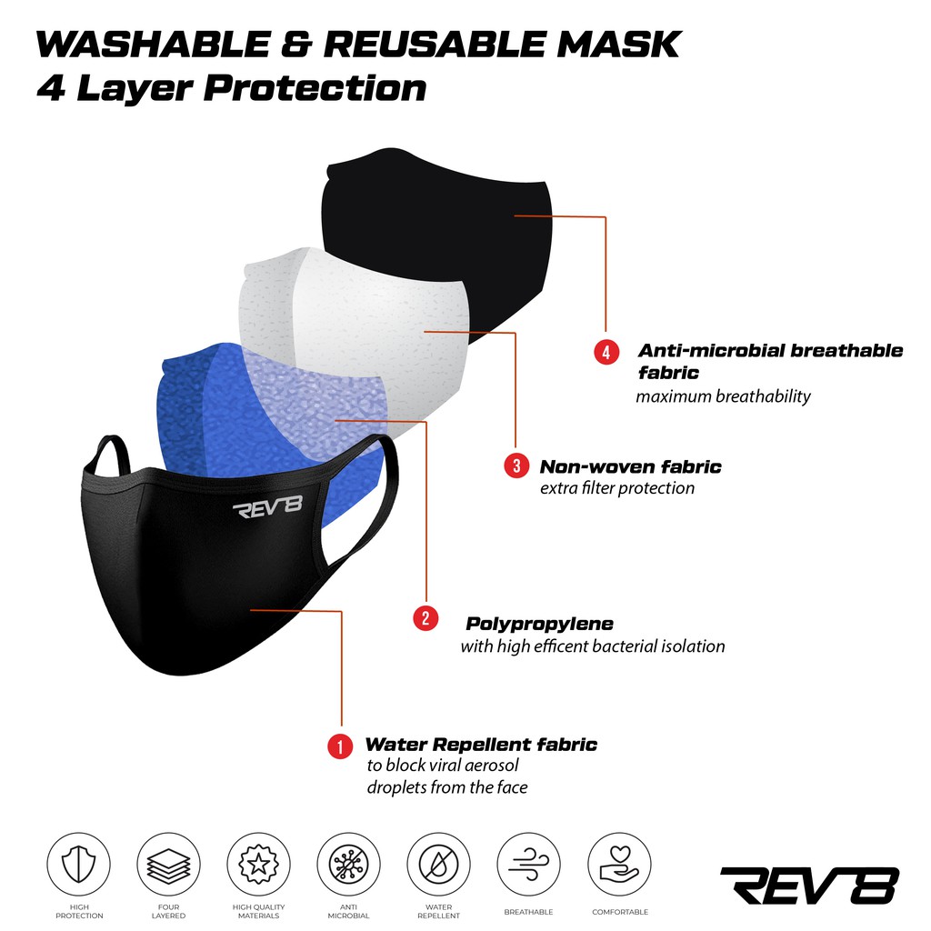 REV8 X NEXTCARE 4ply Reusable & Washable Face Mask Fabric Mask Unisex [READY STOCK] Laboratory Tested