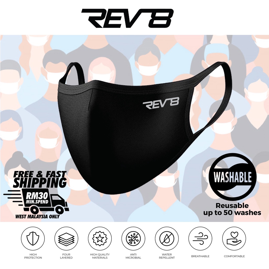 REV8 X NEXTCARE 4ply Reusable & Washable Face Mask Fabric Mask Unisex [READY STOCK] Laboratory Tested