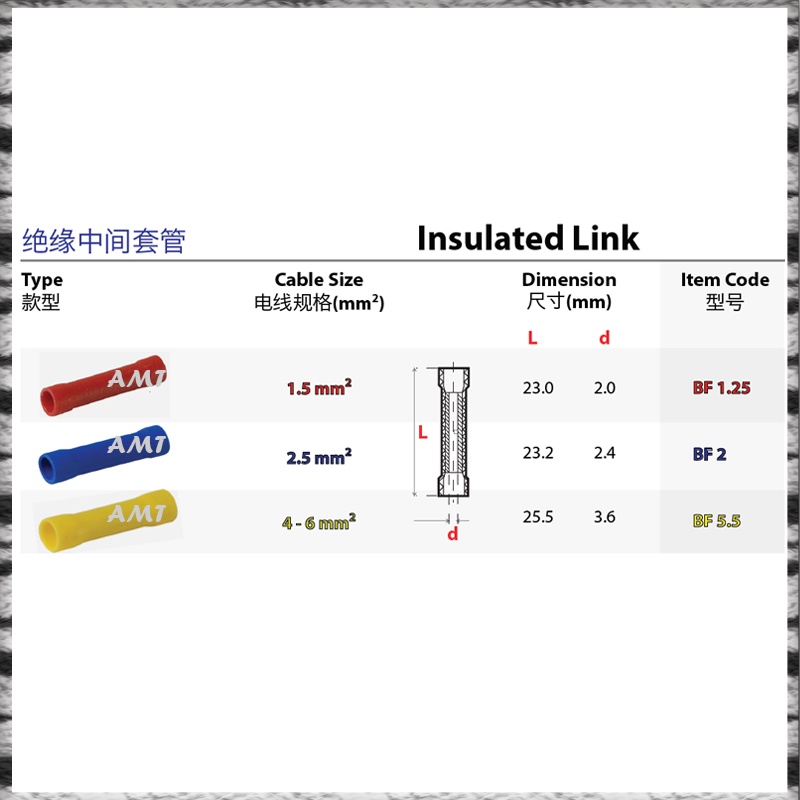 REYLUC CABLE LUG CABLE LINK INSULATED RED YELLOW BLUE 100PIECES