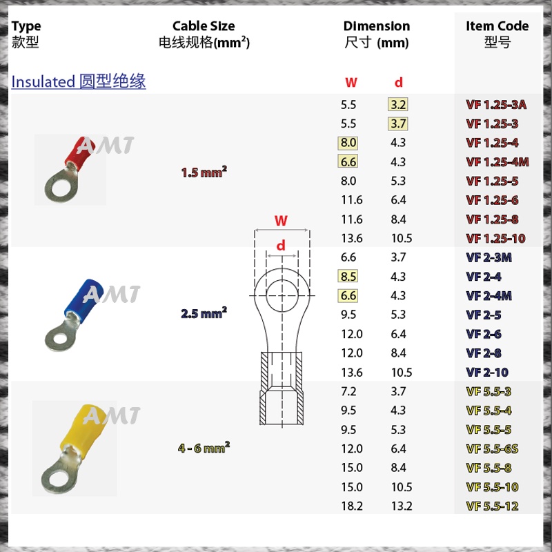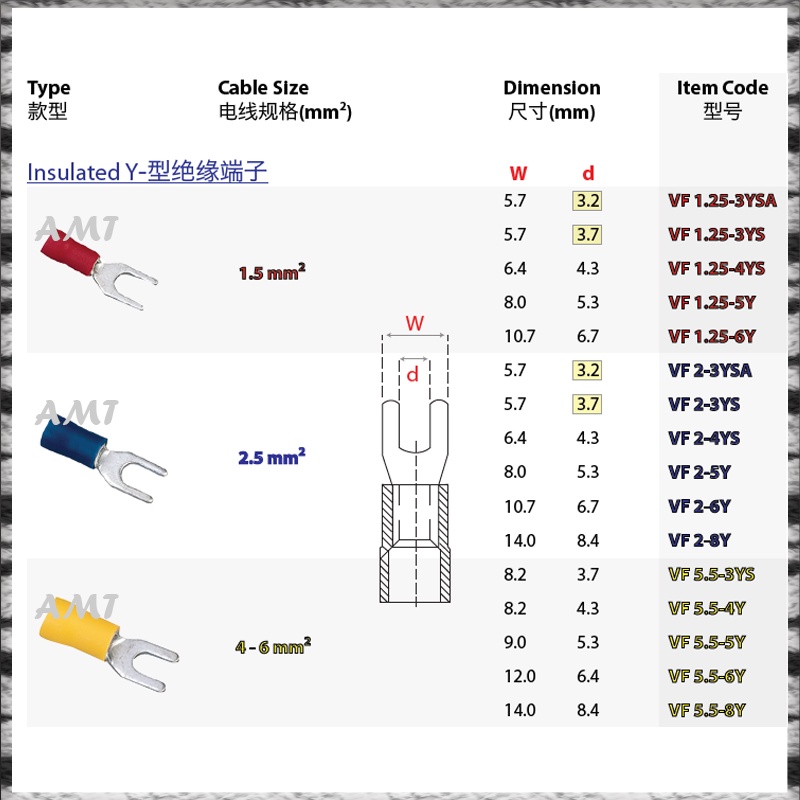 REYLUC CABLE LUG RING & SPADE (Y-LUG) INSULATED RED YELLOW BLUE 100PIECES
