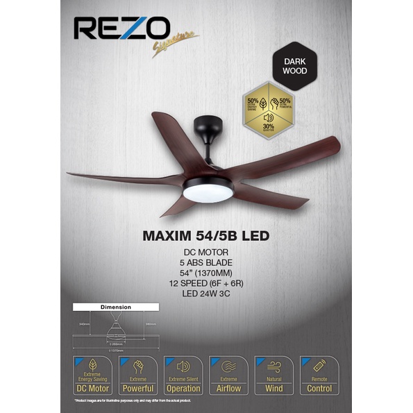 REZO 54" DC MOTOR CEILING FAN 6 SPEED REMOTE CONTROL// WITH LED LIGHT MAXIM 54/5B // MAXIM 54/5B LED