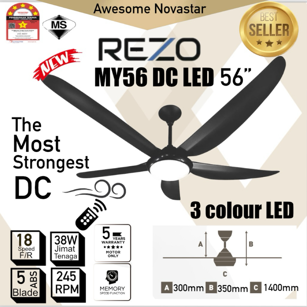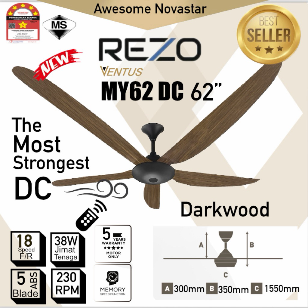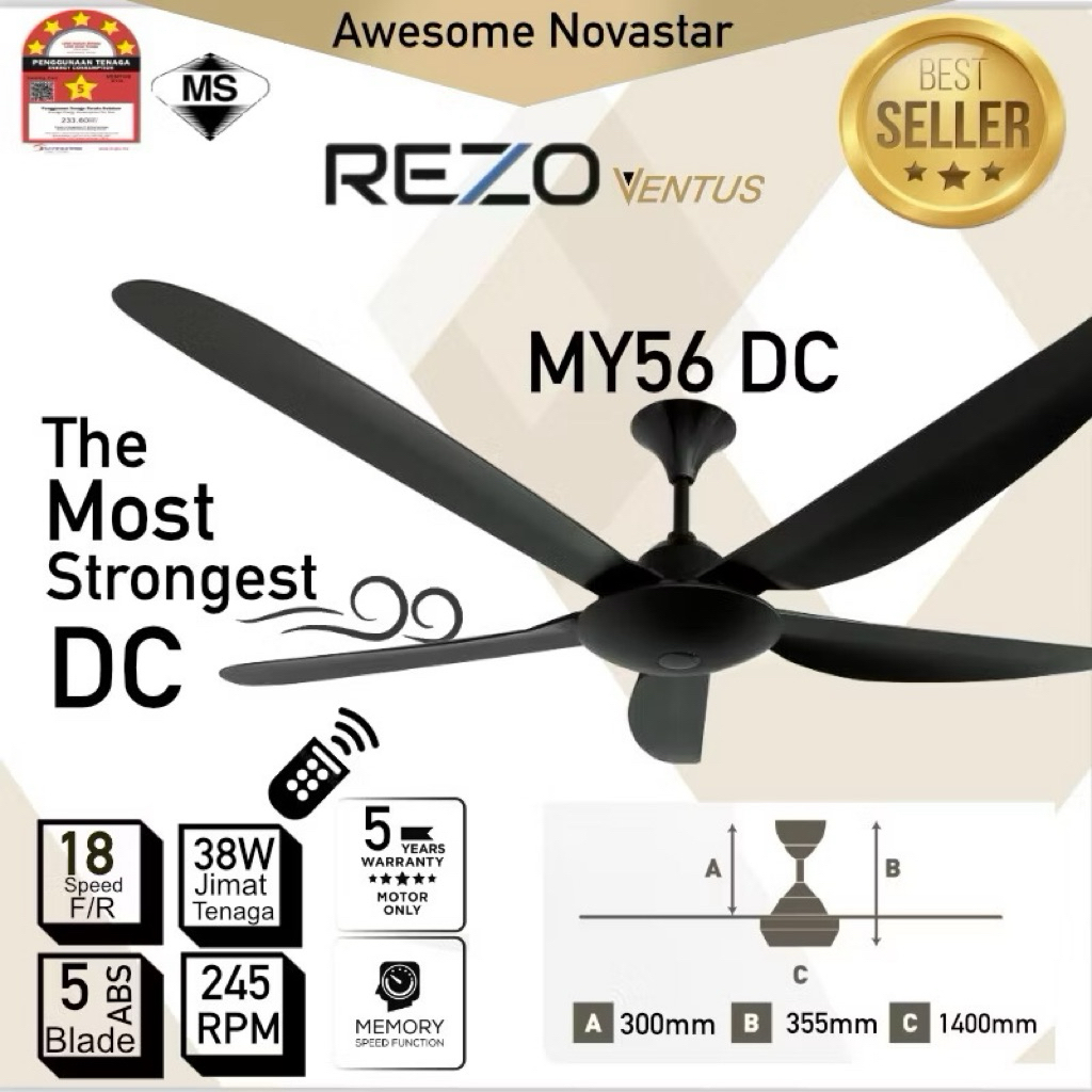 REZO VENTUS MY56 DC MY46 DC MY40 MY62 MR56 DC CASTA 40"/42"/56"/62" inch DC motor 9 Speed Remote Control Ceiling fan