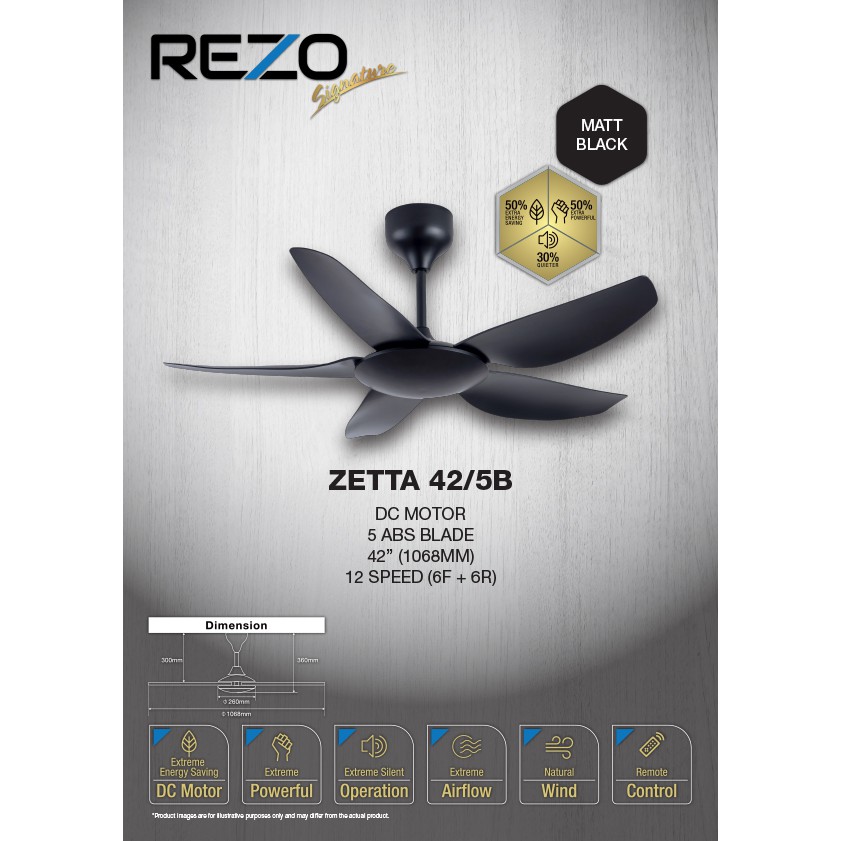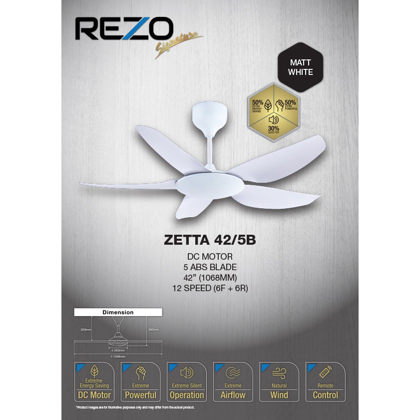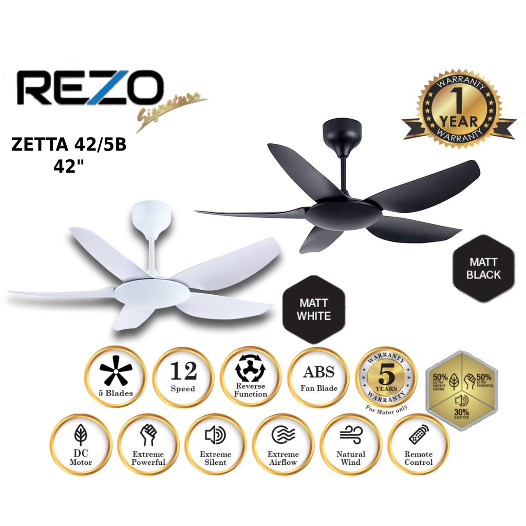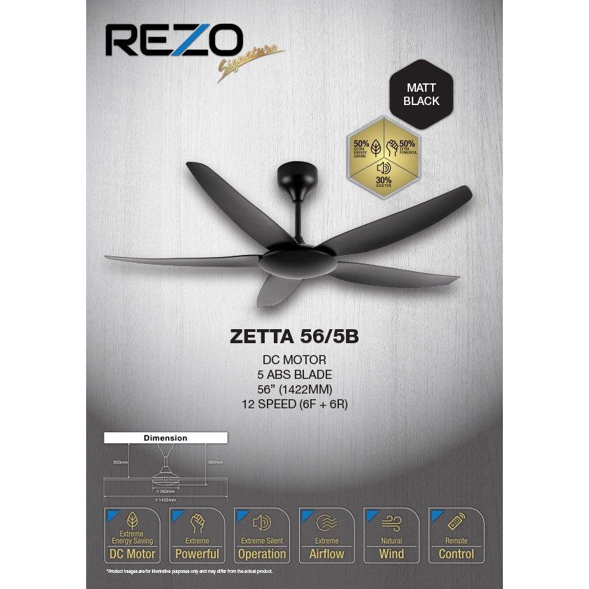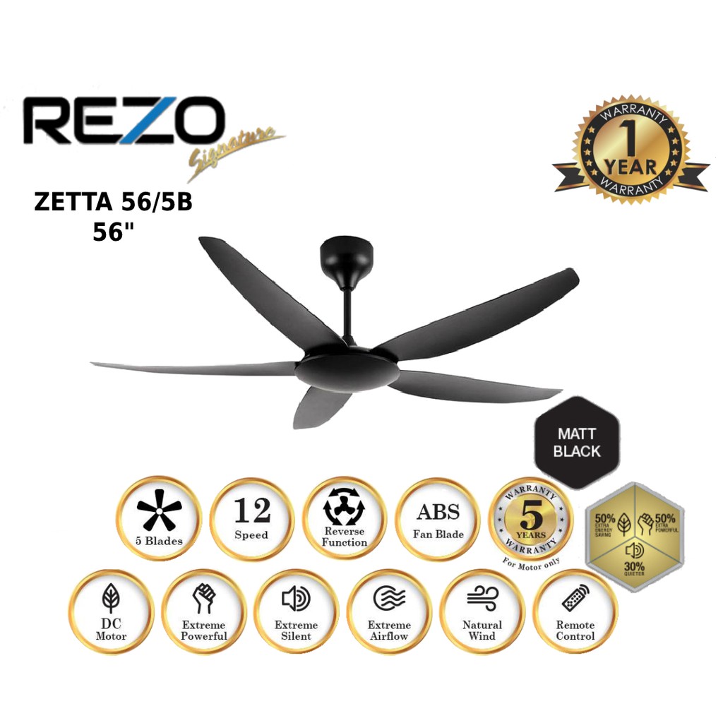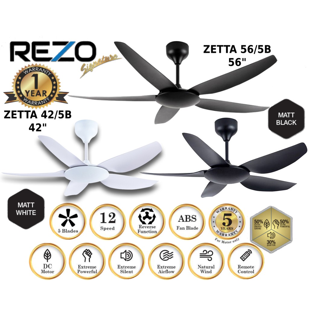 REZO ZETTA 56"/42" DC MOTOR 5 BLADE SIGNATURE CEILING FAN WITH REMOTE CONTROL ZETTA56/5B//ZETTA 42/5B