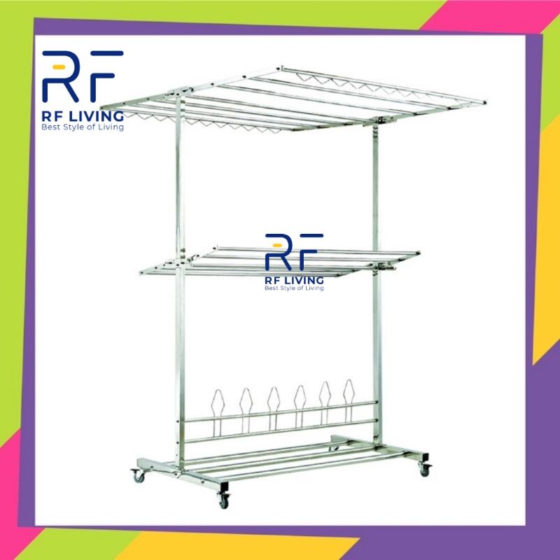 RF Living Stainless Steel Clothe Rack Cloth Drying Rack Foldable Mobility Clothing Shoe Hanger Rak Penyidai Baju Ampaian