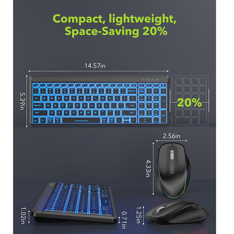 RGB Backlit Silent Wireless Keyboard and Mouse Combo 2.4G Dual Mode Rechargeable Wireless Keyboard Mouse set for Desktop/Laptop