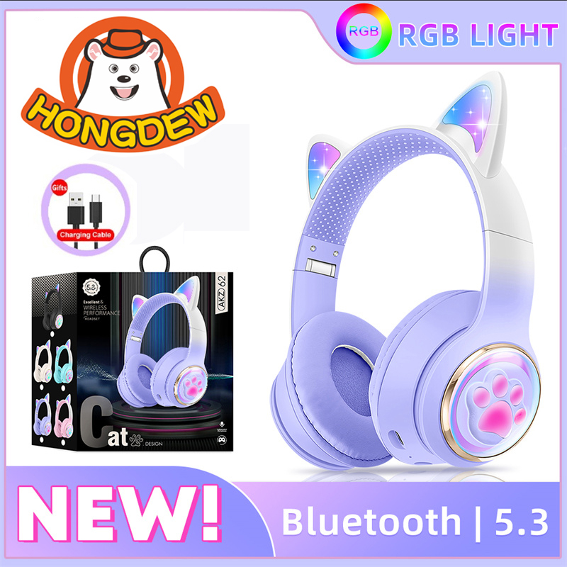 RGB Cat Ear Wireless Headphones for PC Cute 3D Space Capsule Cat Bluetooth Headset Foldable Gaming Headset For Kids Girls Gifts