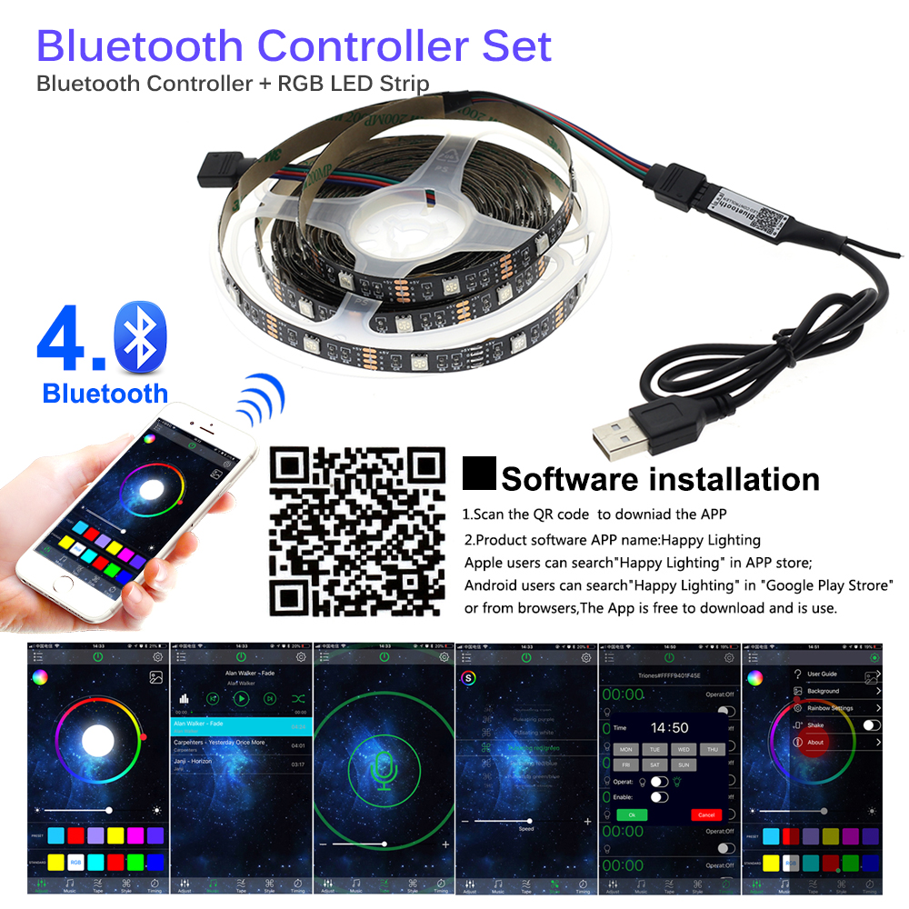RGB Changeable USB LED Strip 5050 DIY Tik Tok light Flexible LED Light Bluetooth Control / Music Control LED TV Background Lighting