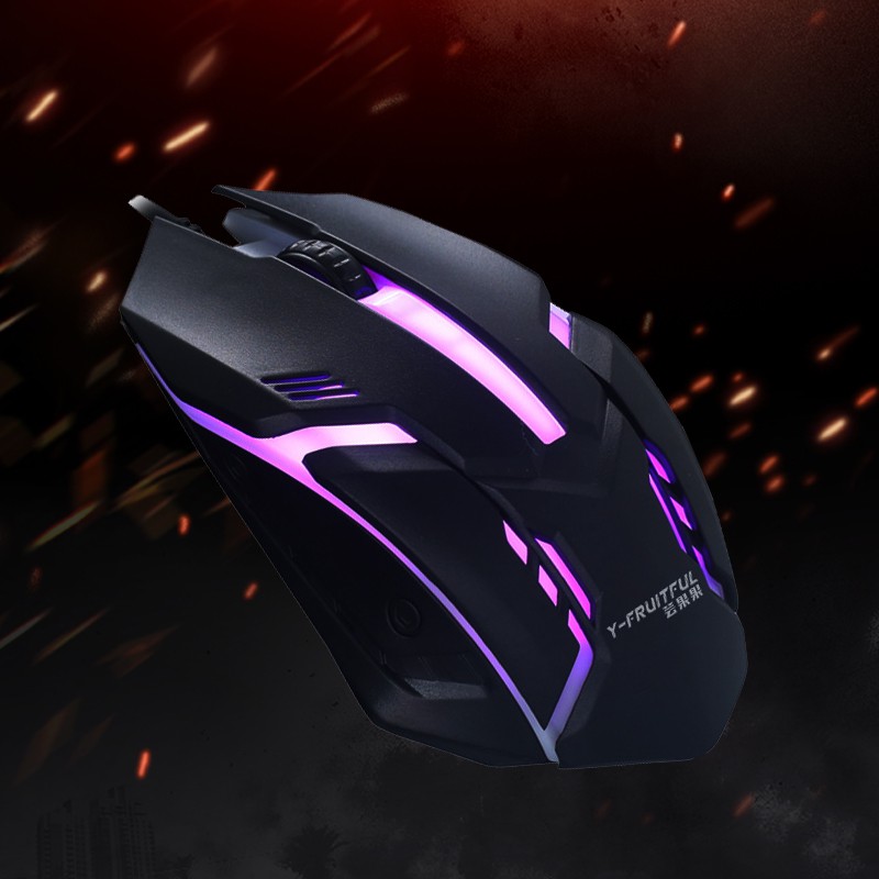 RGB E-Sports Game Mouse Wired Y-FRUITFUL Tetikus permainan Black Mice wayar Gaming Computer Control Big Cable