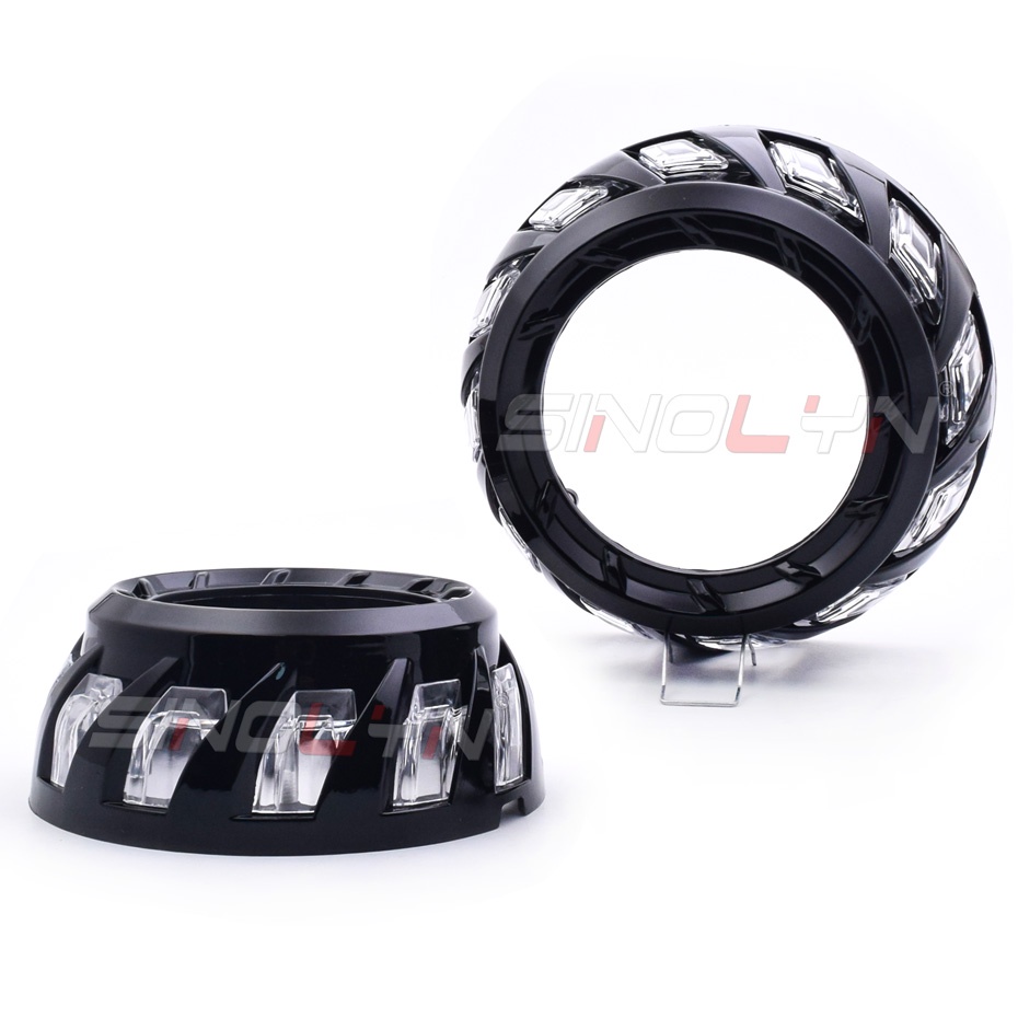 RGB LED Angel Eyes Spiral Shrouds Revolving Dynamic APP Control Sequential Flowing Bezels For3 Inch Projector Lens