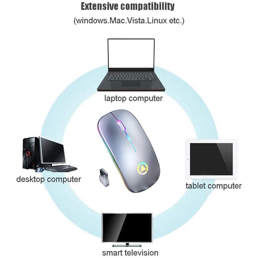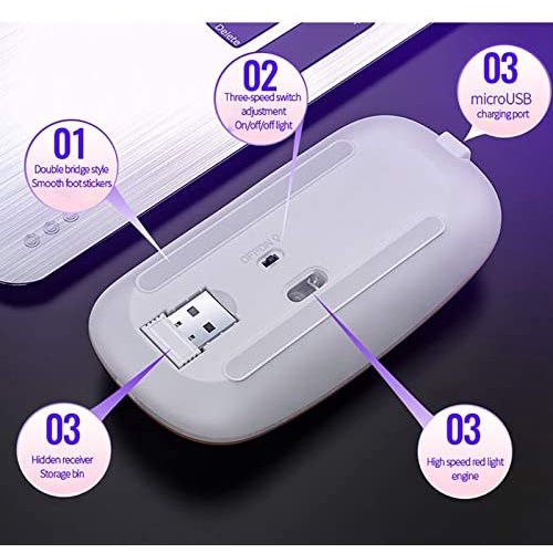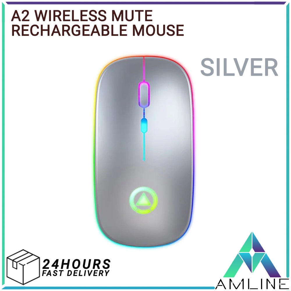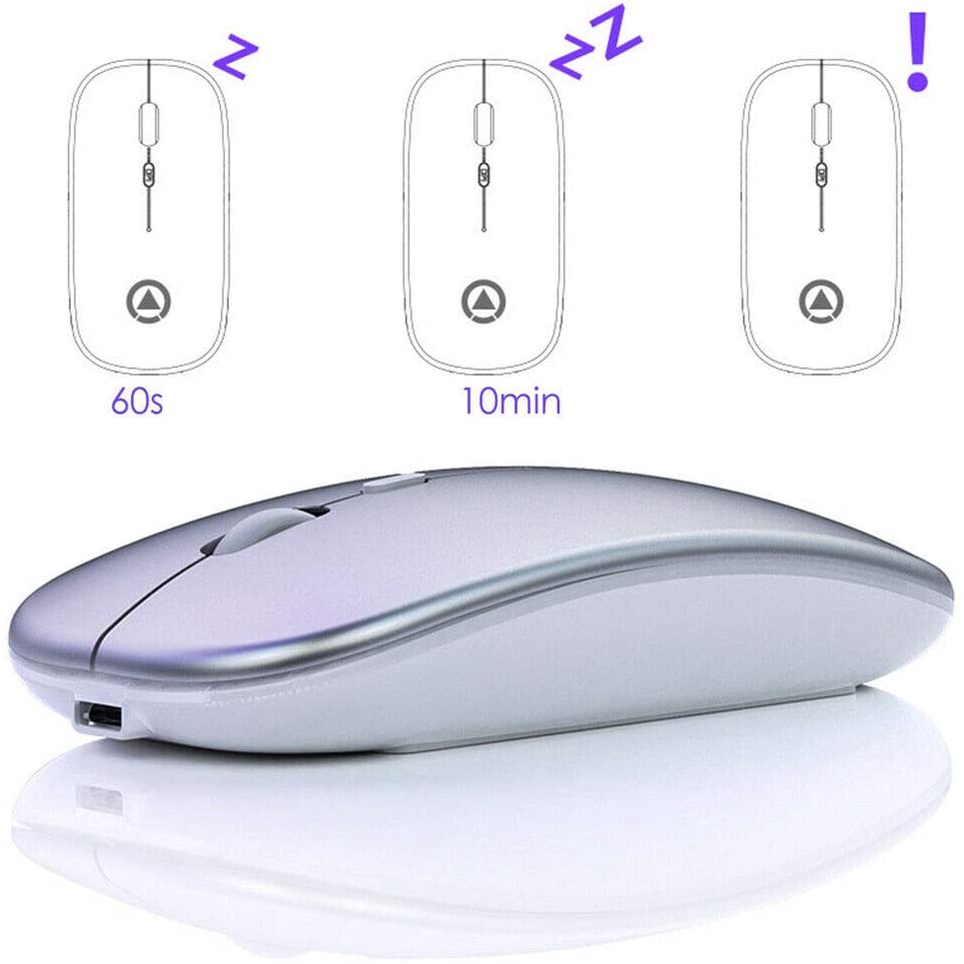 RGB LED Backlit Mice Rechargeable Mouse Wireless Silent USB Optical Mouse for PC Laptop Computer Office SILVER