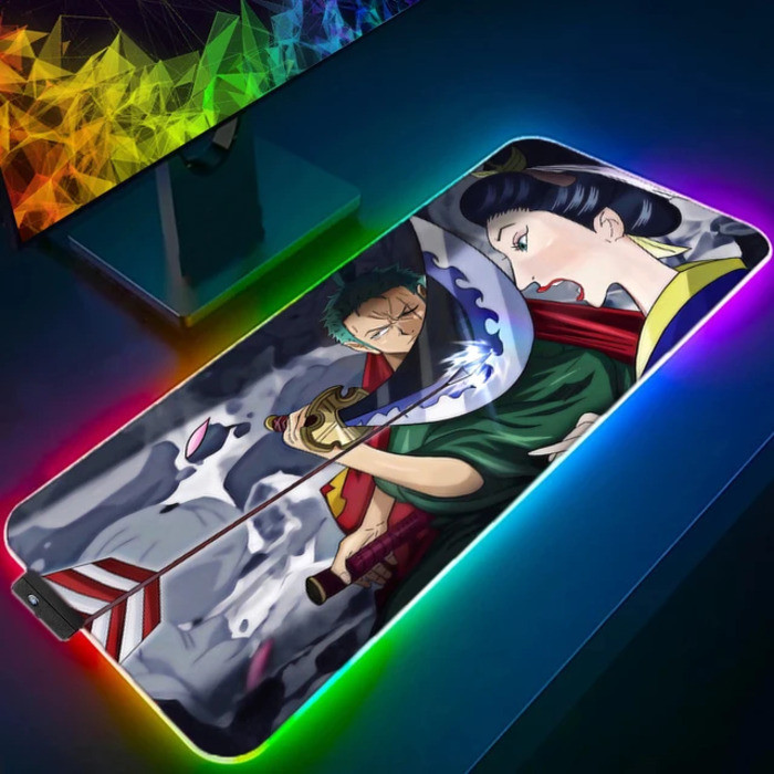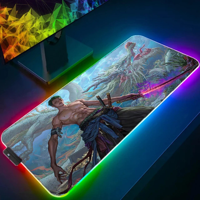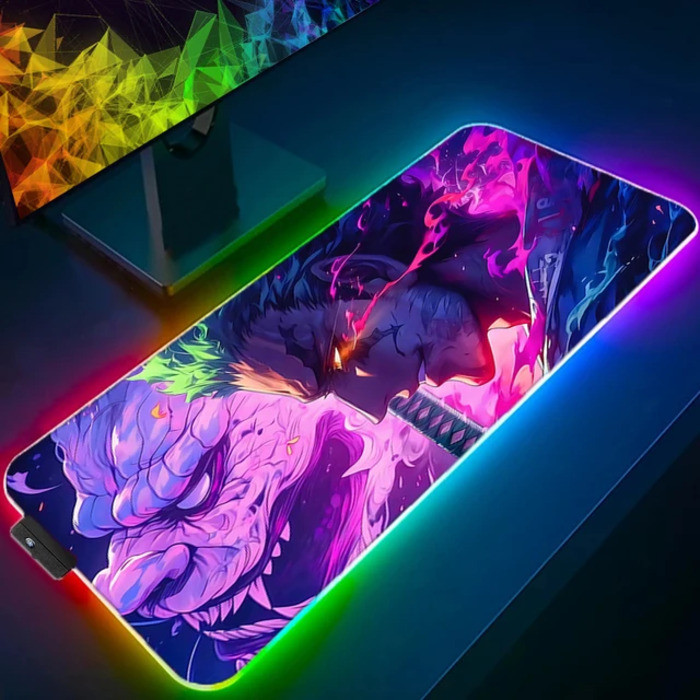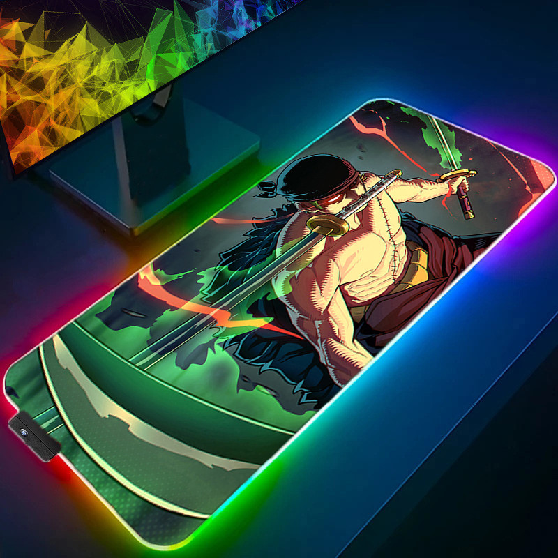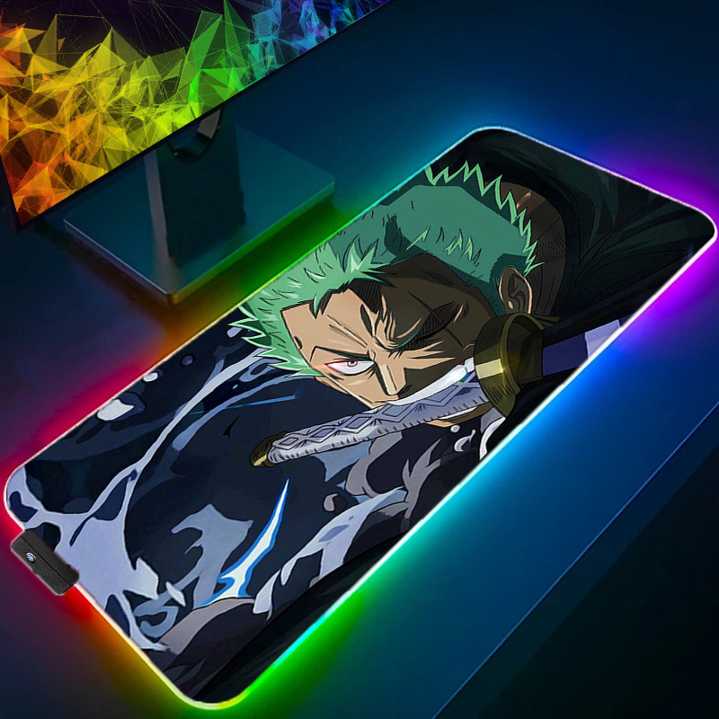 RGB LED Mouse Pad Anime Pad Mouse Mat Computer Gamer Accessories Mouse Keyboard Deskpad Waterproof Roronoa zoro Pattern Desk Mat