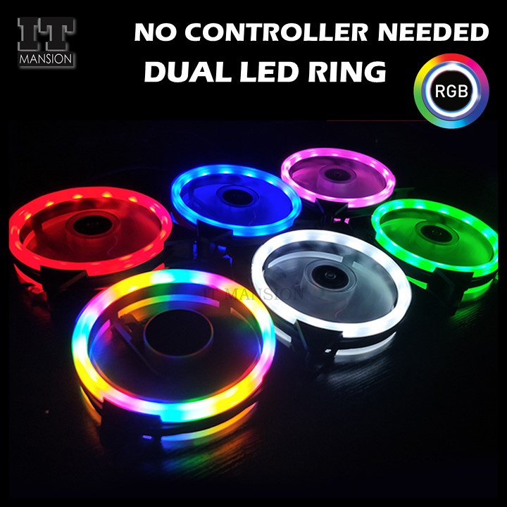 RGB PC case fan 4 pin 120mm Cooling fans Gaming Computer LED Cooler Double Ring Desktop Casing 12cm Dual Halo Molex