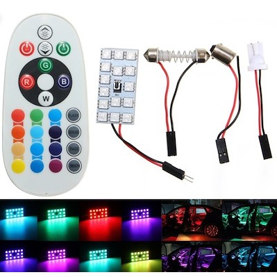 RGB T10 -15SMD-5050 Car Dome Light Interior Light with Remote Control.