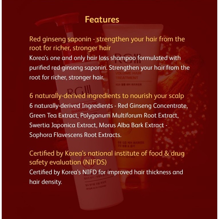 RGIII RG3 Hair Loss Clinic Shampoo (520ml)/Treatment (1000ML)