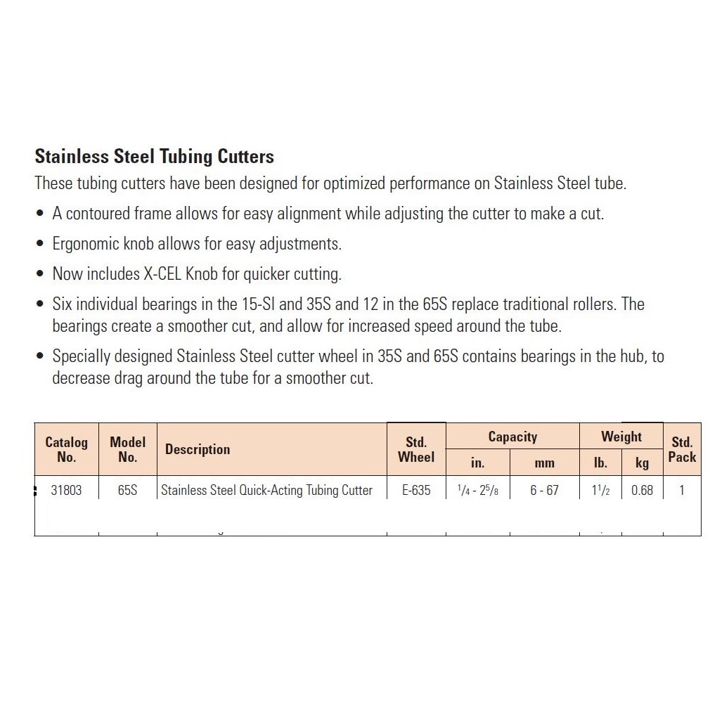 RIDGID 65S Stainless Steel Quick-Acting Tubing Cutter / E635 Stainless Steel Cutter Wheel with Bearings - Brand New & Or