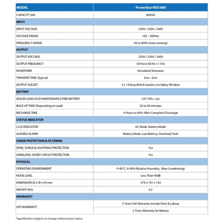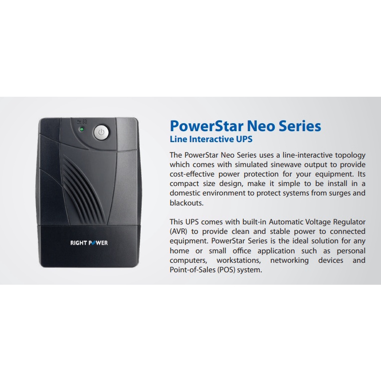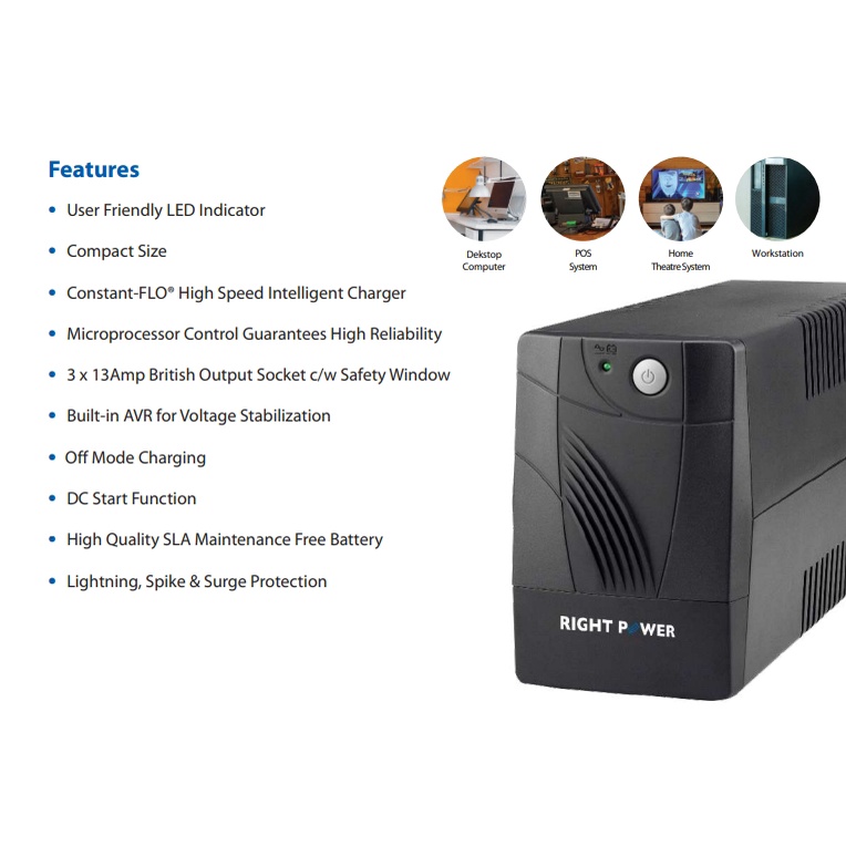 KUASA KANAN NEO 800 UPS BUILD IN AVR COMPACT 3 UK SOKET LIGHTNING SURGE SPIKE PROTECTOR