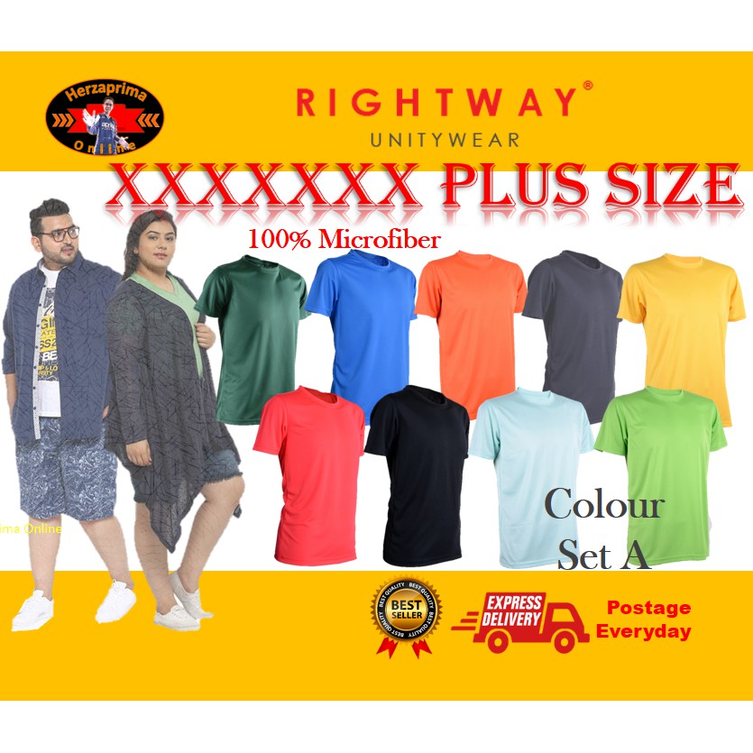 RIGHTWAY Big Size T-Shirt Microfiber 4XL-7XL Short Sleeve Colour Set A For Men & Women By Herzaprima Online