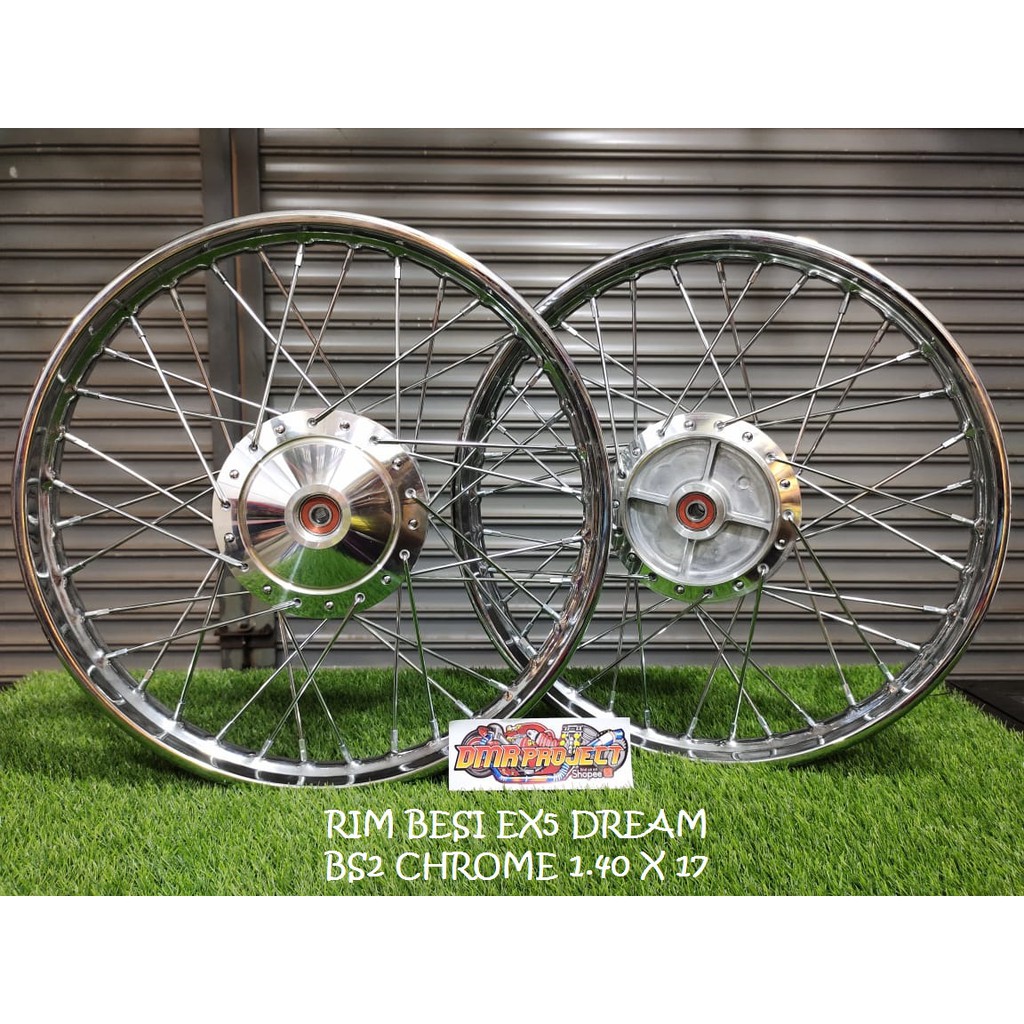 RIM BESI EX5 DREAM/W100 1.40X17 COMPLATE SET (SIAP PASANG) RIM BESI BS2 STD FULL CHROME STANDARD RIM EX5 BESI RIM STD