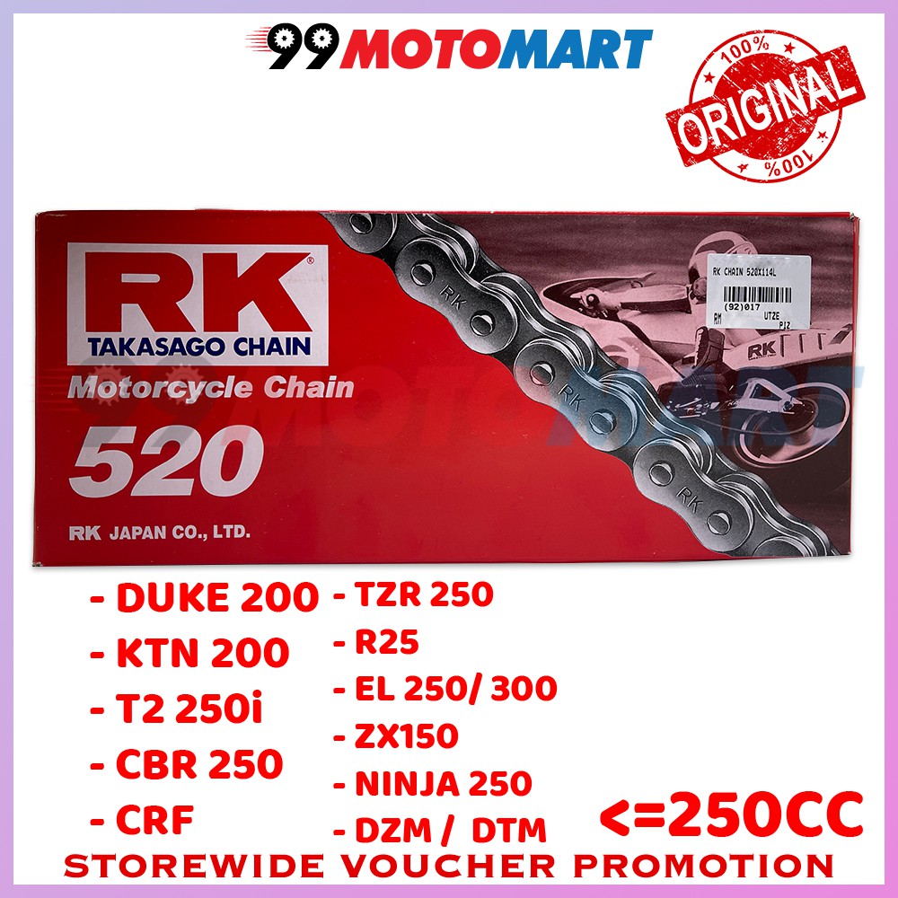 RK 520 TAKASAGO CHAIN HEAVY DUTY X 114L ORIGINAL RK TAKASAGO CHAIN RANTAI NINJA 250