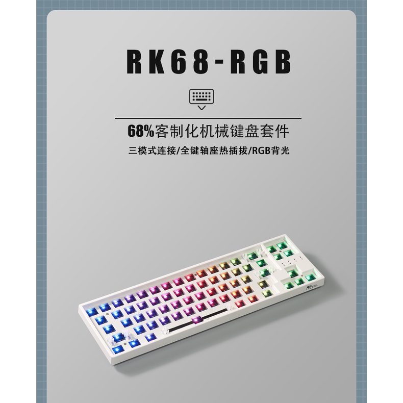 RK68 Plus RK871 Royal Kludge Mechanical RGB Keyboard Hot swap 3 Mode Bluetooth Wireless Type C