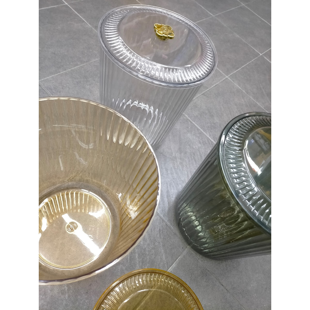 RMI Clear Dustbin With Cover Clear Ribbed Trash Can with Lid, Round Waste Basket Bathroom Bins