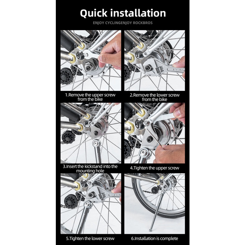 ROCKBROS Bike Side Stand 16" Foldable Kickstand Aluminum Alloy Adjustable Stable Side Stand Cycling Accessories