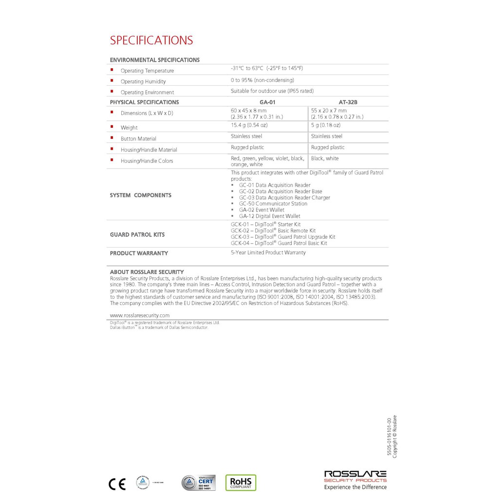 ROSSLARE DigiTool GA-01B Mountable Location Tag For Guard Patrol System