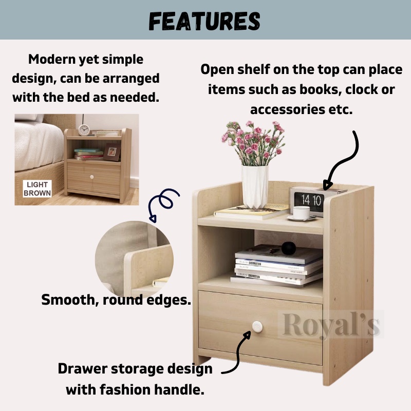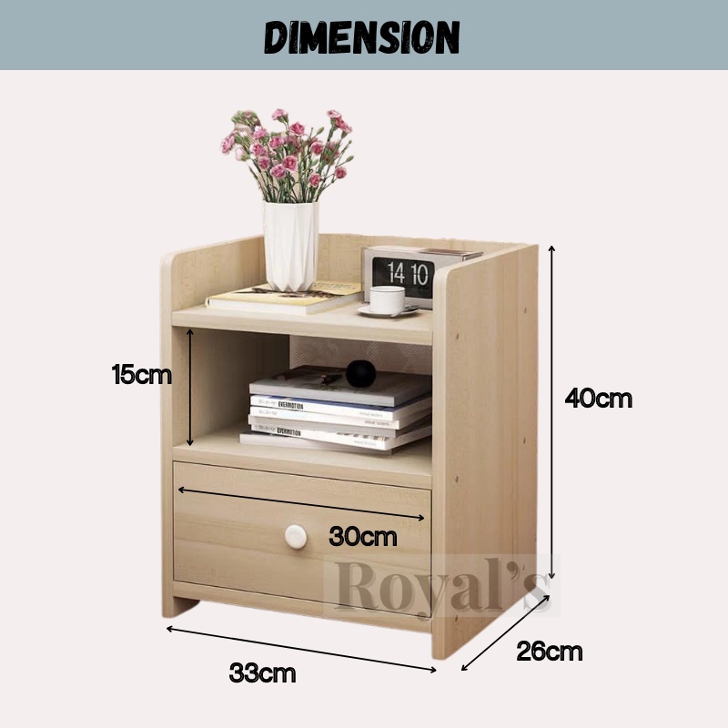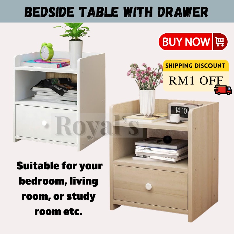 ROYAL'S Bedside Table with Drawer Small Side Table Bedroom Cabinet Storage Set Bilik Tidur Bedroom Furniture Rak Kecil