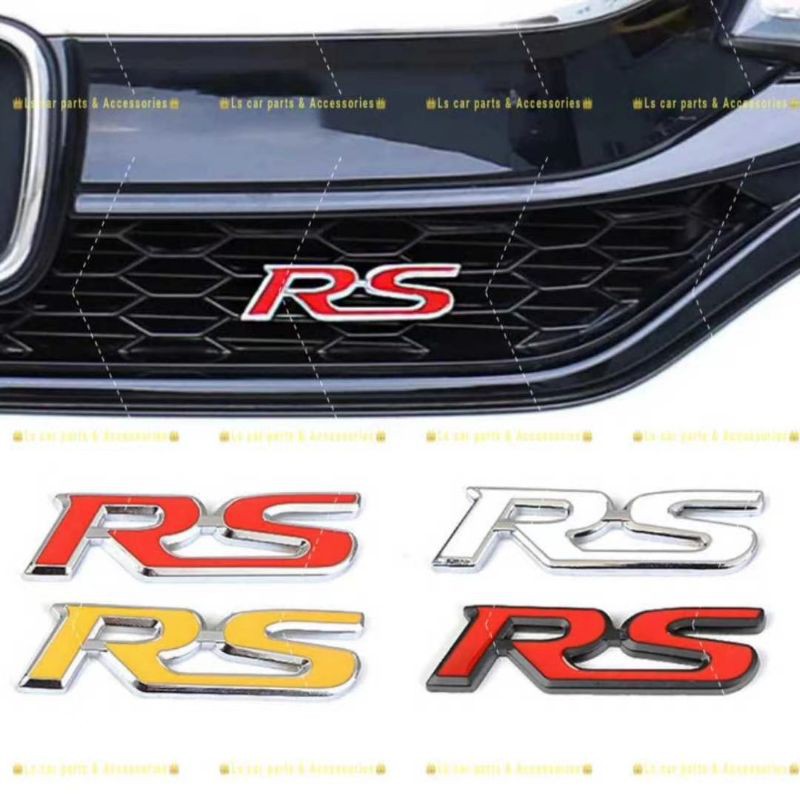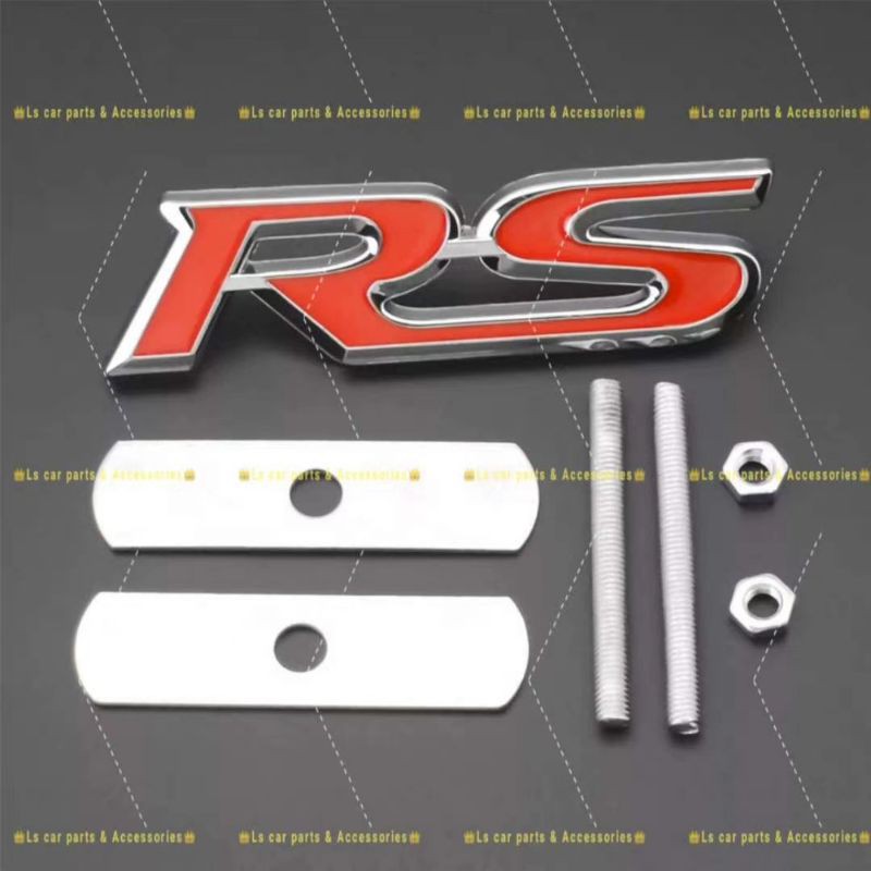 RS Logo Grill Emblem Badge Sticker Lip Front Bumper Bonnet Hood Metal Steel Screw 3D Trunk Honda Audi Type Lock Bracket