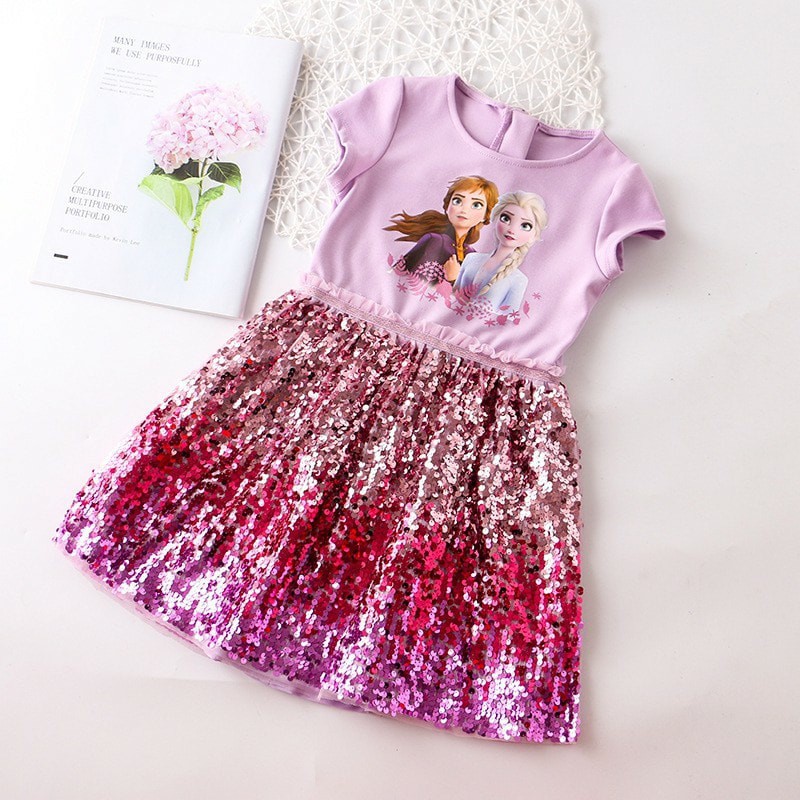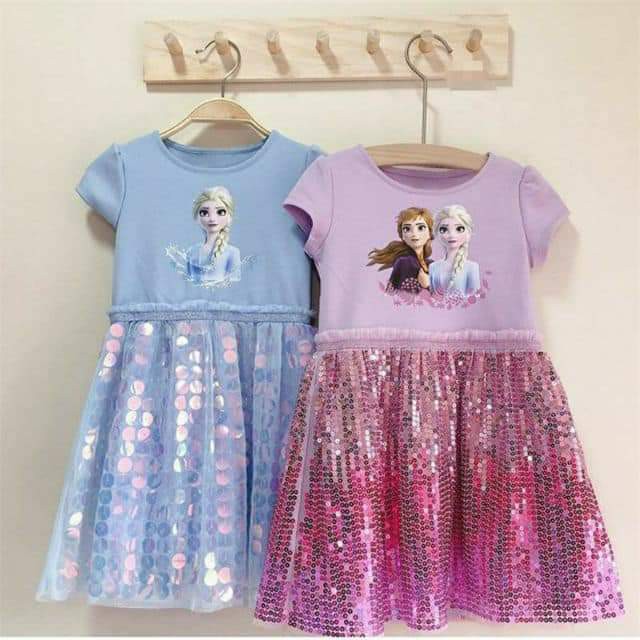 RS028-1 BLING BLING SEQUINES DRESS - BLUE / PINK ( SIZE 90-160 )