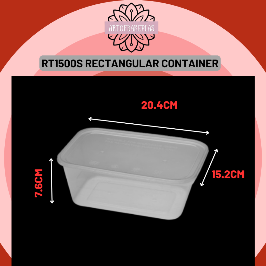 RT-1500S Rectangular/Square Plastic Disposable Food Container 1500ml {50PCS} / Bekas Microwave