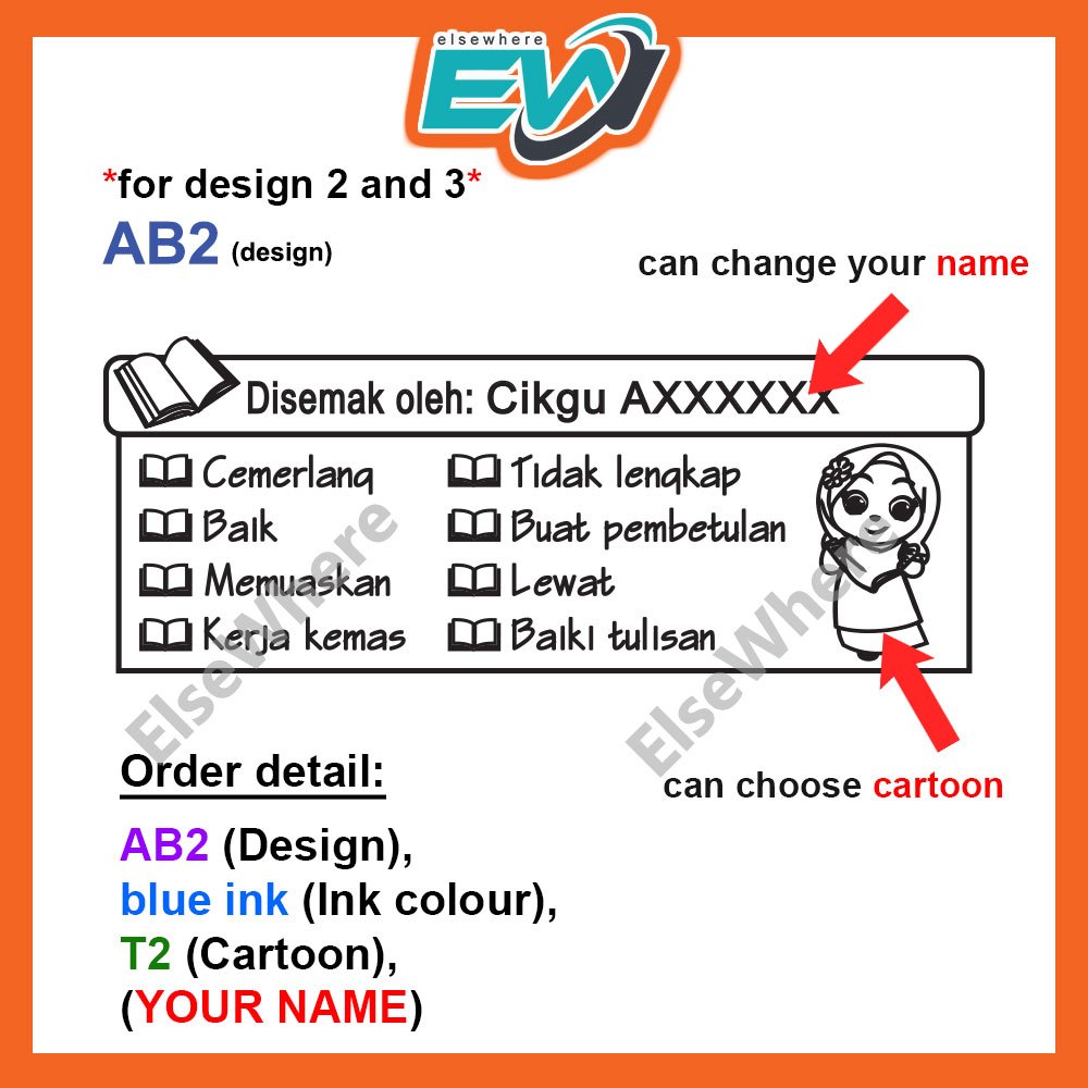 RUBBER STAMP SELF INK SHINY S854/ COP ULASAN/ COP SEMAK/ COP KERJA RUMAH (22X58MM)