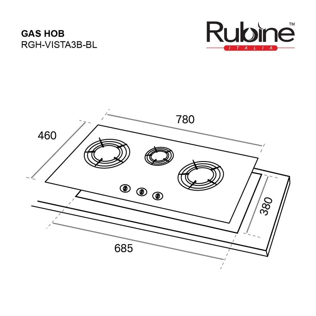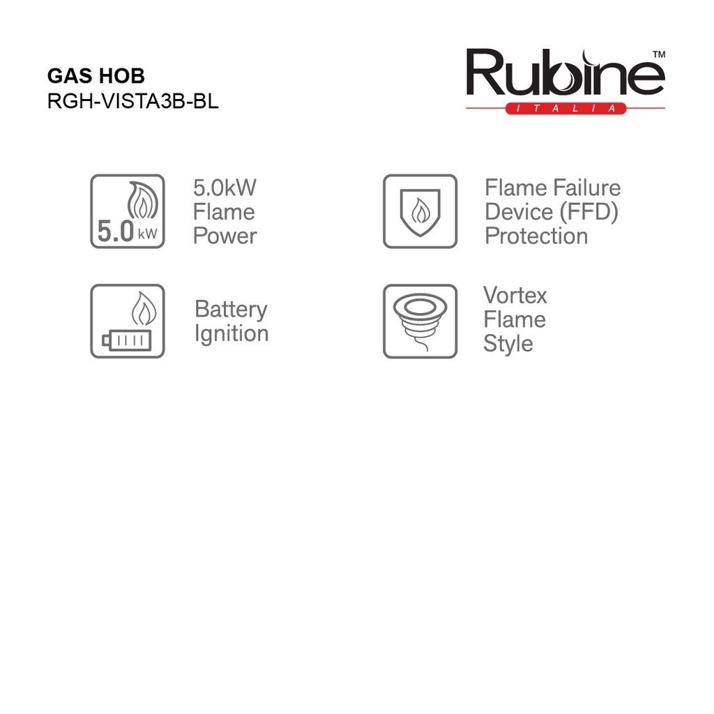 RUBINE RGH-VISTA3B-BL Glass Gas Hob With Flame Power (5.0kw)