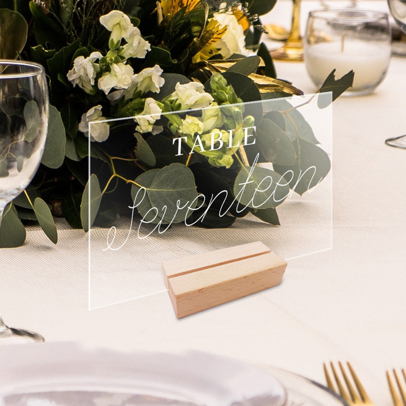 RUNNY Acrylic Table Sign Holder with Wooden Base Clear Wedding Table Sign Number Place Card Display Stand for Restaurant