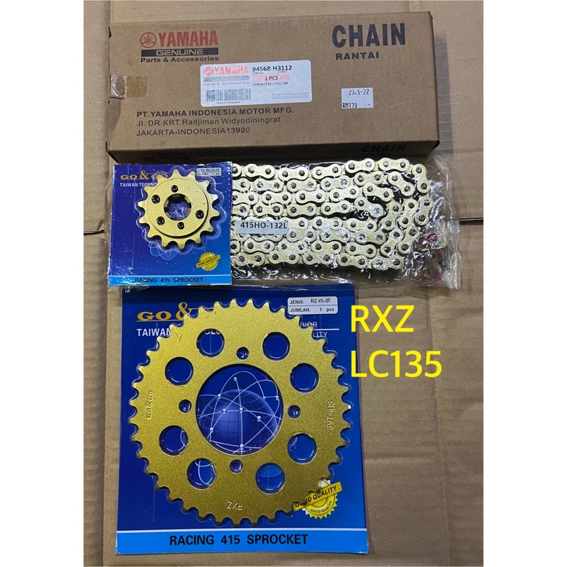 RXZ LC135 Y125ZR Y15 SPROCKET 415-132 ORING YAMAHA CHAIN GOLD SET ORI GONGO SPROCKET ORING CHAIN RK RKM