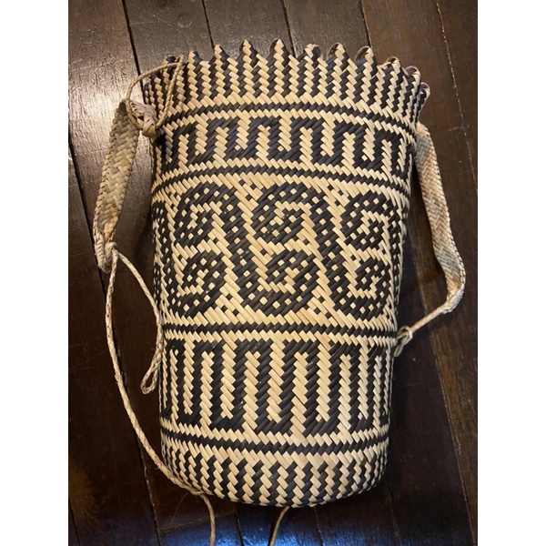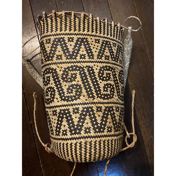 Ra01# Beautiful Natural Rattan Basket Hand Plated Punan Sarawak Borneo