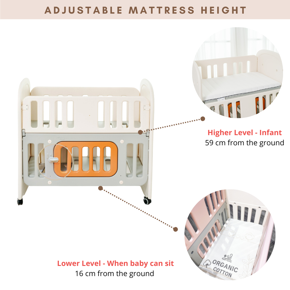 RaaB Family™ Glücklich Baby Cot Baby Crib Non toxic Multifunctional Cradle Cot Large Storage Space