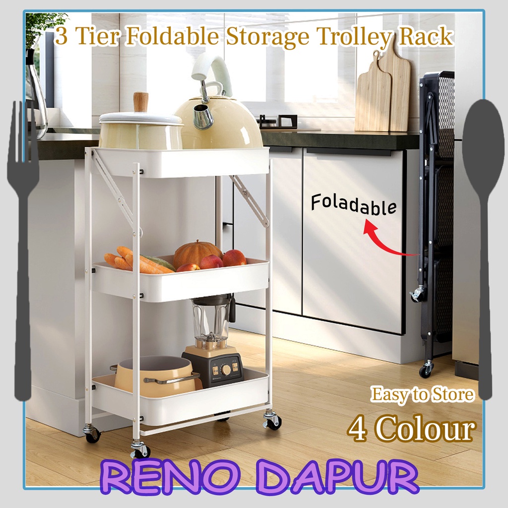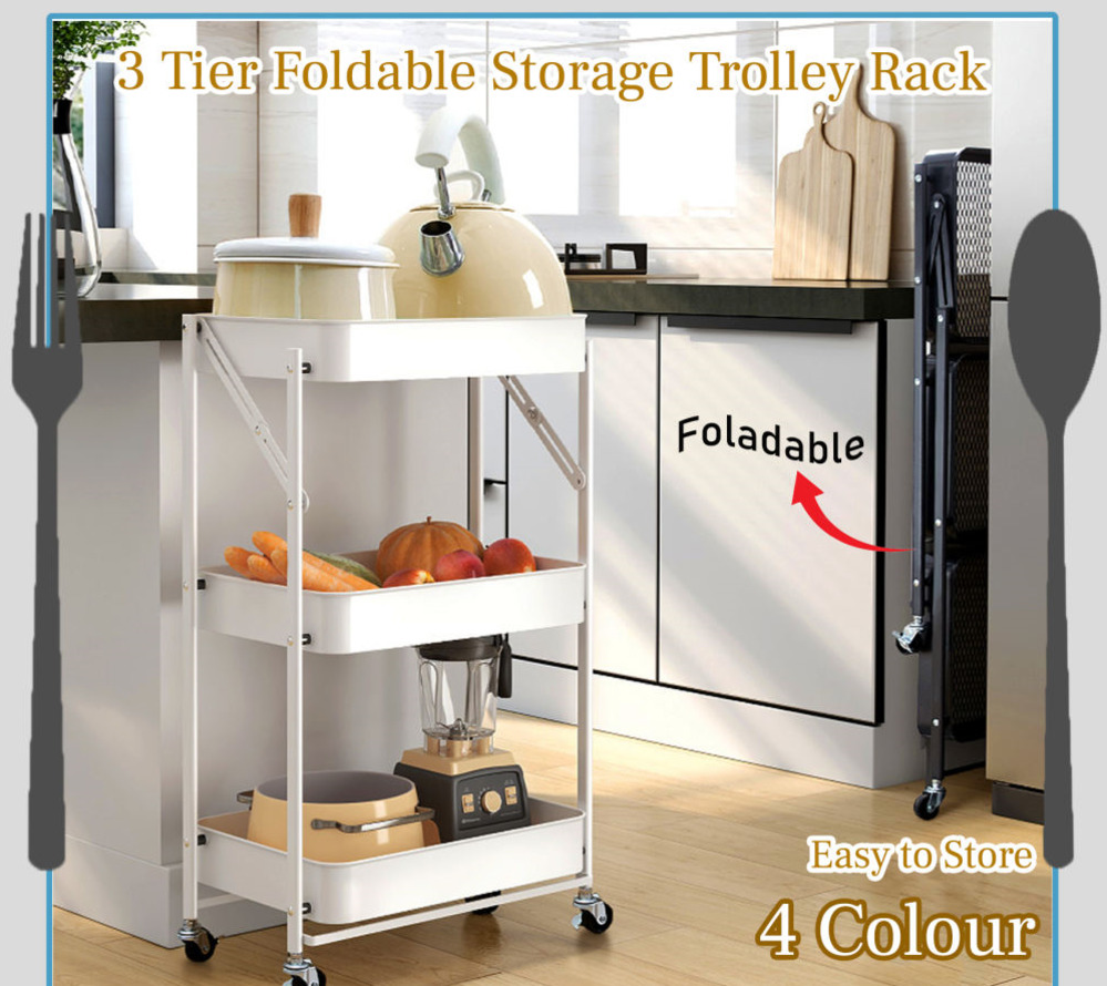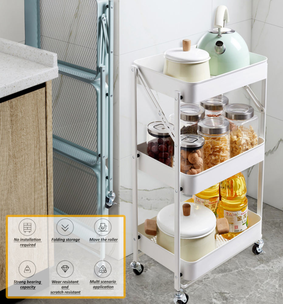 Rack 3 Tier Multi-functional Storage Trolley Steel Kitchen Storage Rack Office Shelves And Foldable With