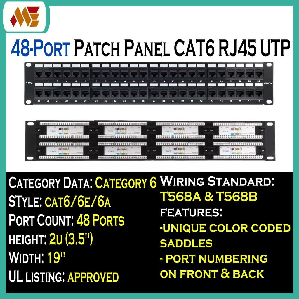 Rack Mount CAT 6 UTP Patch Panel 48-Ports