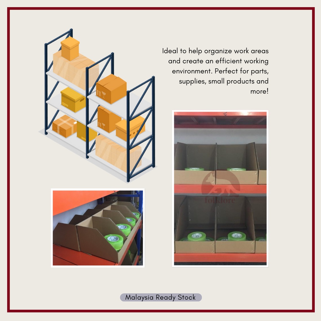 Racking Storage Box Corrugated Cardboard Paper Self Locking Bins Tray Hardware Spare Parts Warehouse Shelf Organizer