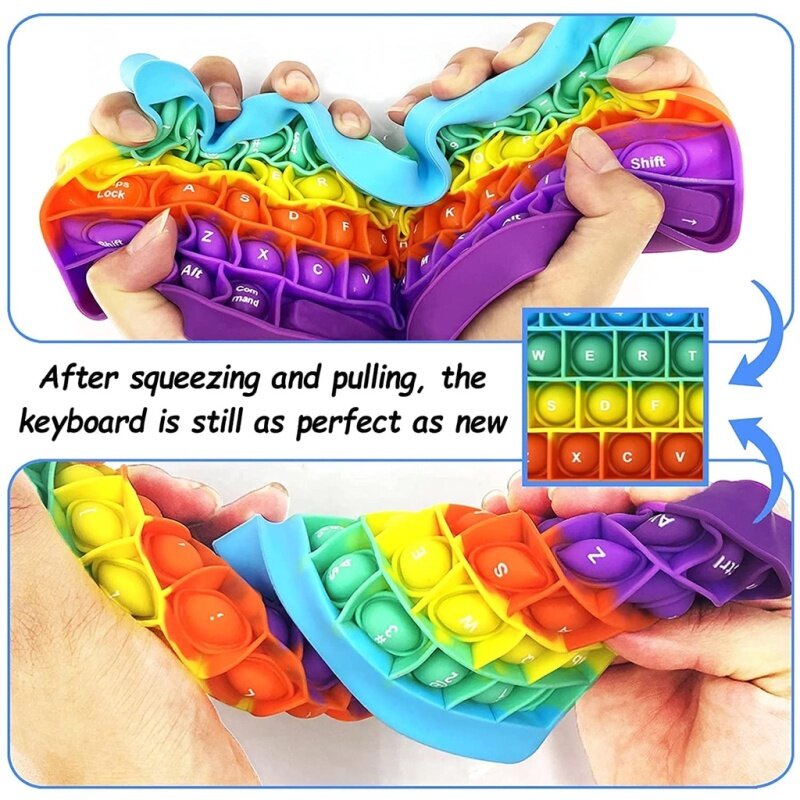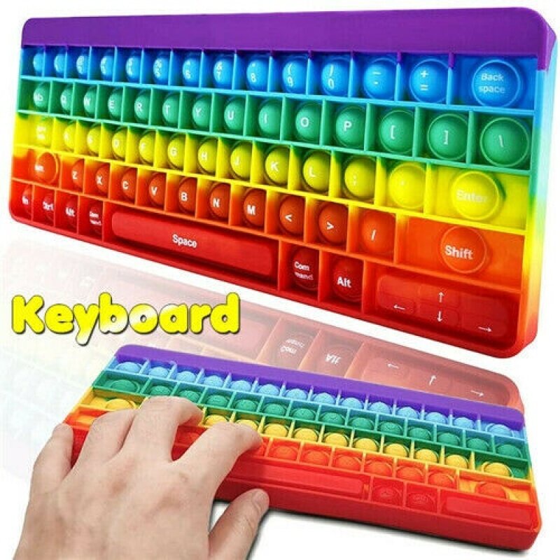 Rainbow Keyboard Pop It Push Fidget Toys Bubble Popit Soft Squishy Reliver Stress Toy Adult Antistress Box Gift Kids Toy
