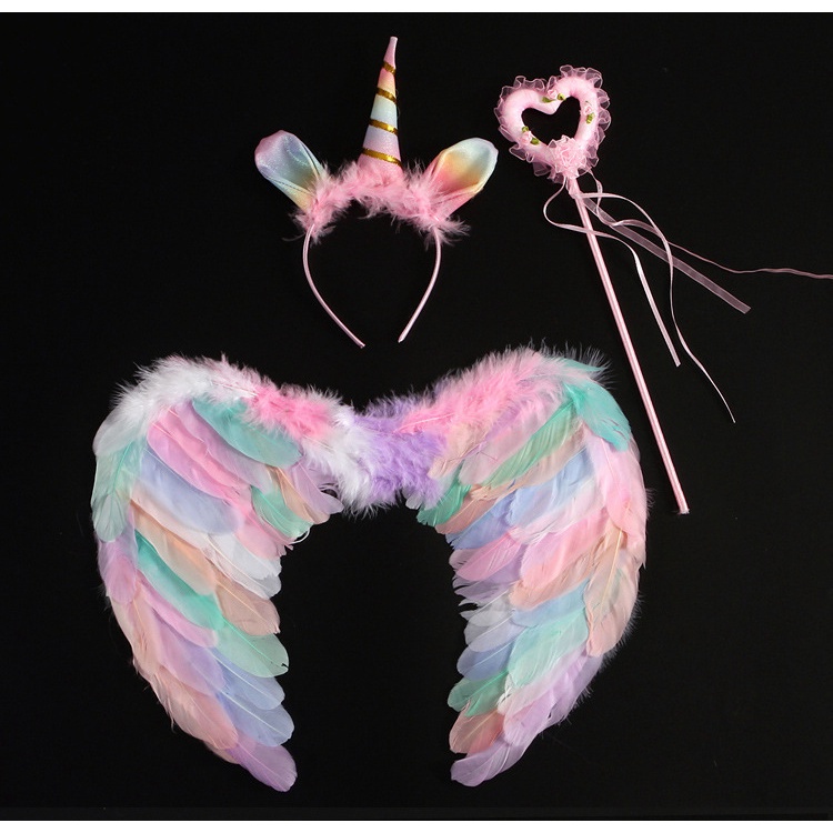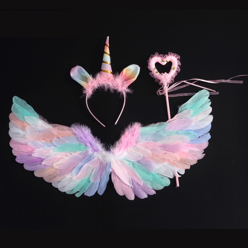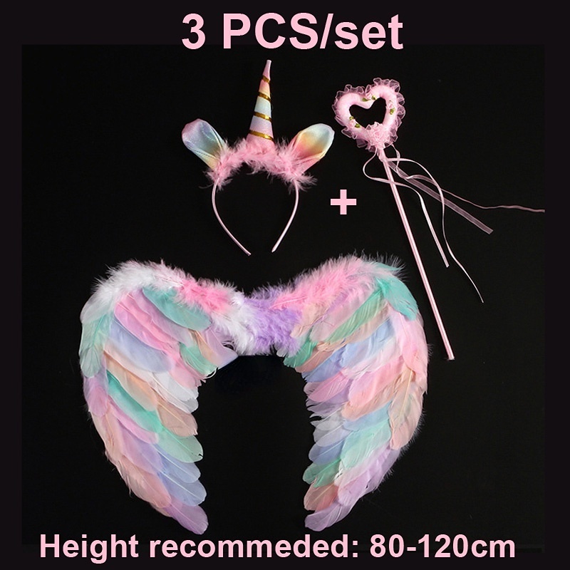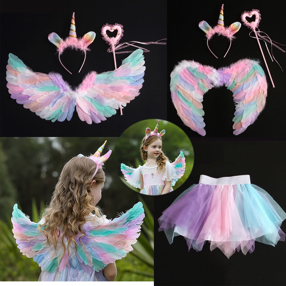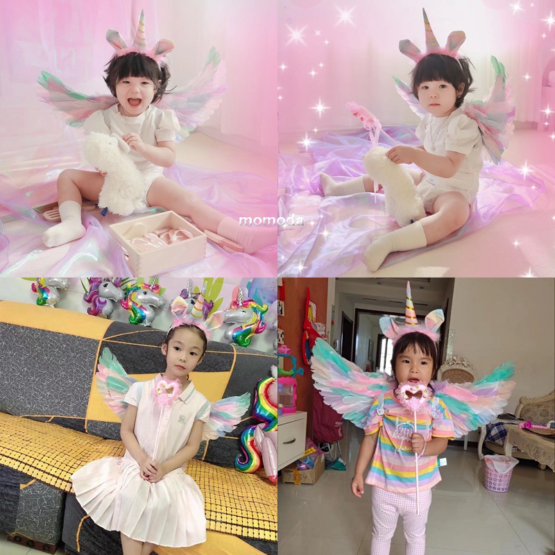 Rainbow Unicorn Wings for Kids Baby Girls Feather Wings for Angel Cosplay Girls Birthday Unicorn Cosplay Party Photo Shoot