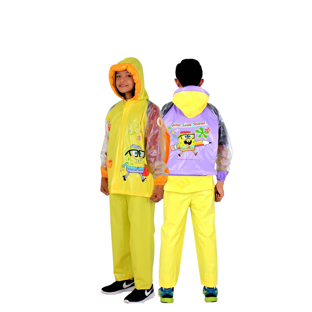 Raincoat Suit Boys Girls Coat Jacket Pants Coat Motif Spongebob PVC Press
