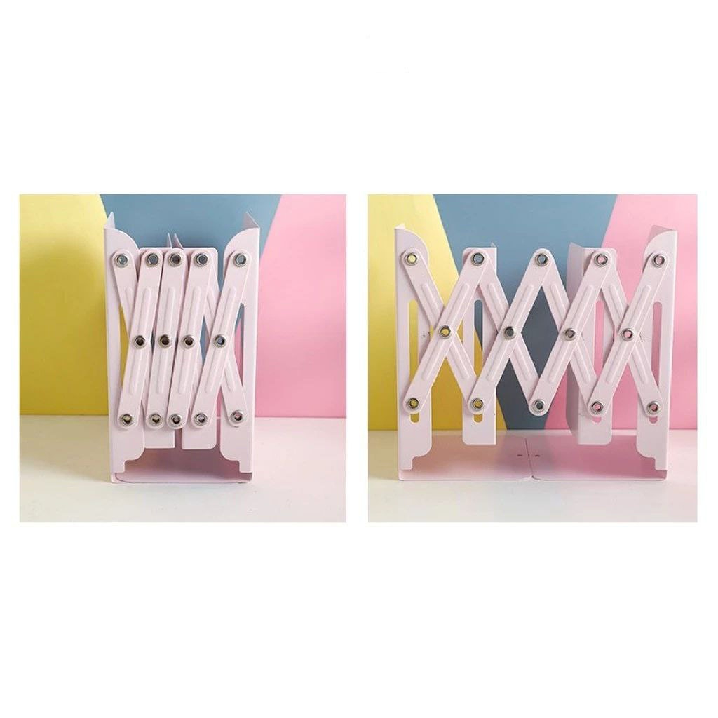 Rak Buku Expandable Stainless Steel Bookend Book Holder Adjustable Bookshelf Desk Table Book Rack