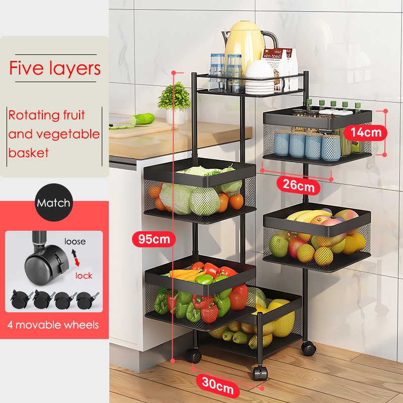 Rak Dapur Kitchen Storage Rack Multifunctional Rotating Rak Viral Iron Material Food Vegetable Storage HOT SALE