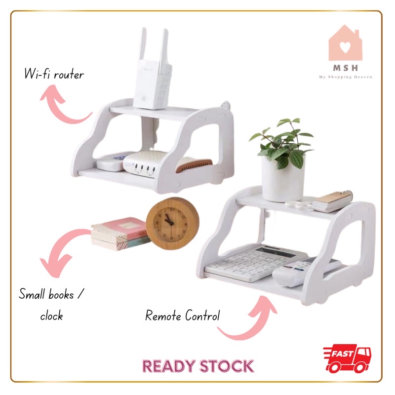 Rak Modem unifi TV dekoder 2 tingkat / Double wifi router storage rack TV wall-mounted set box shelf wall rack