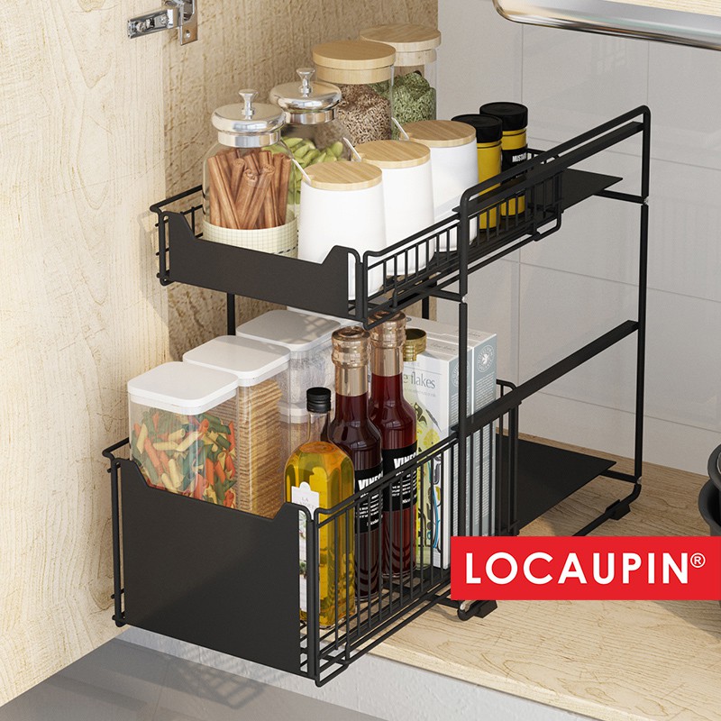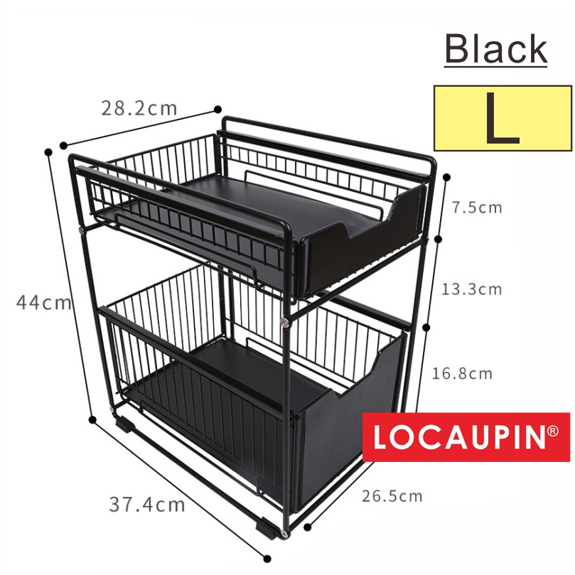 Rak Pinggan Kabinet 2 Tier Sliding Cabinet Basket Pull Out Organizer Drawer Pantry Under The Sink Storage
